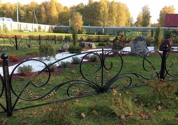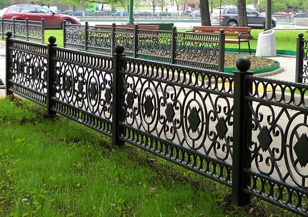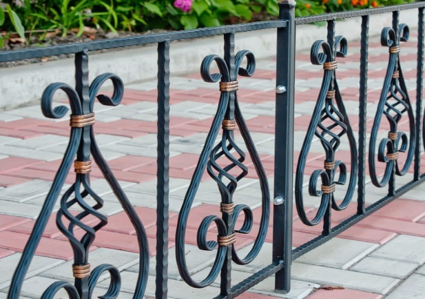 Важно и то, что за кованым ограждением практически не требуется уход. Изредка зачищайте его щеткой проволочного типа и наносите для восстановления прежнего лоска лакокрасочное покрытие.