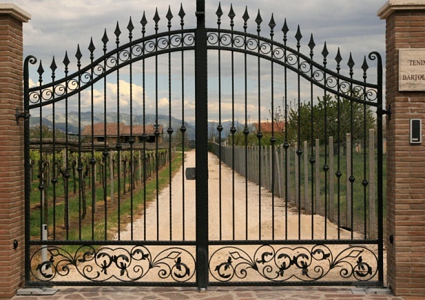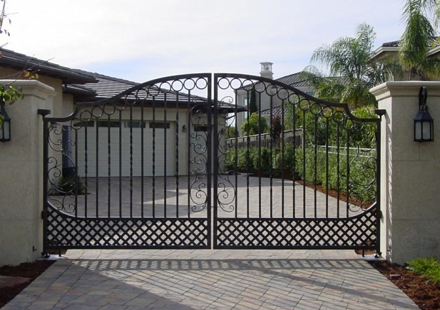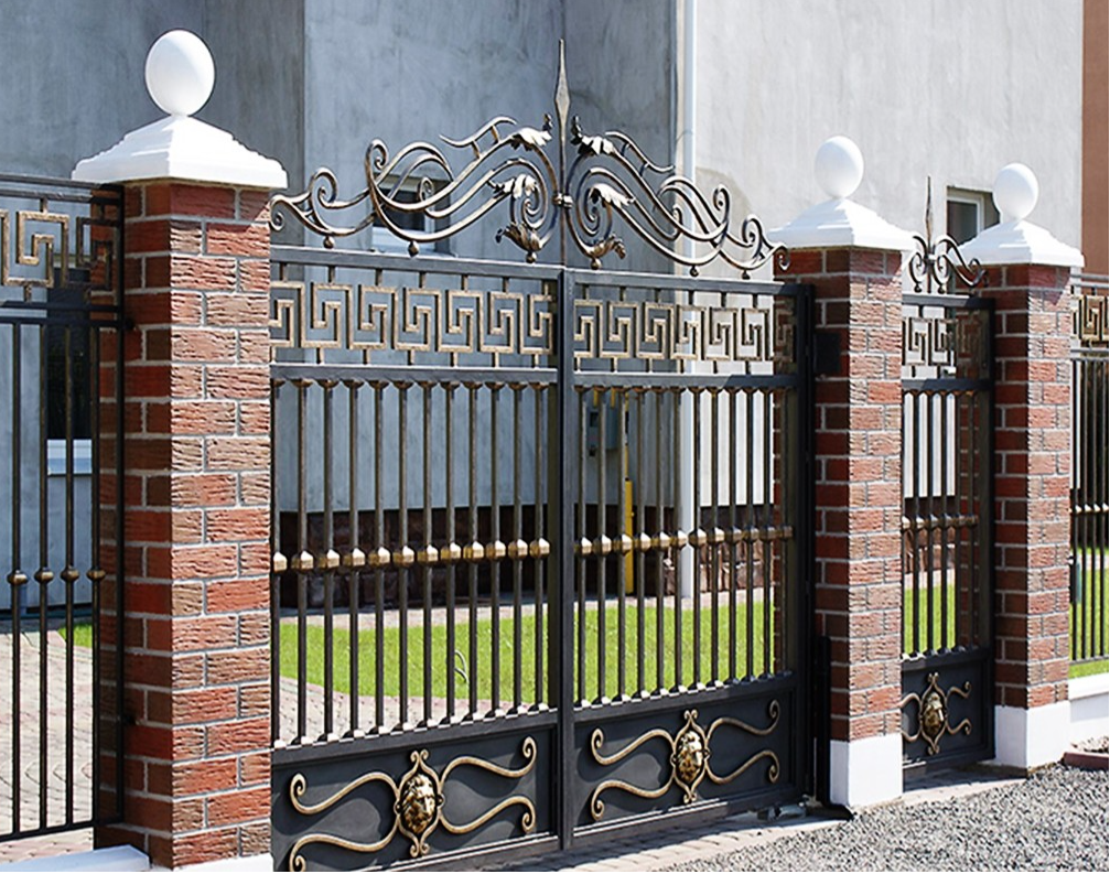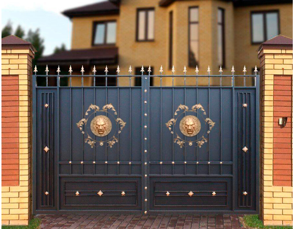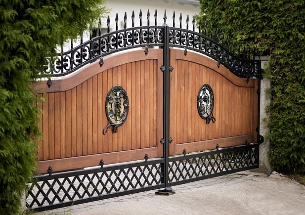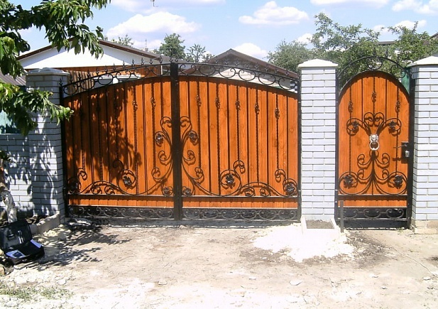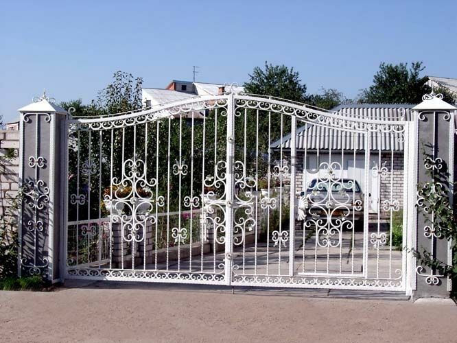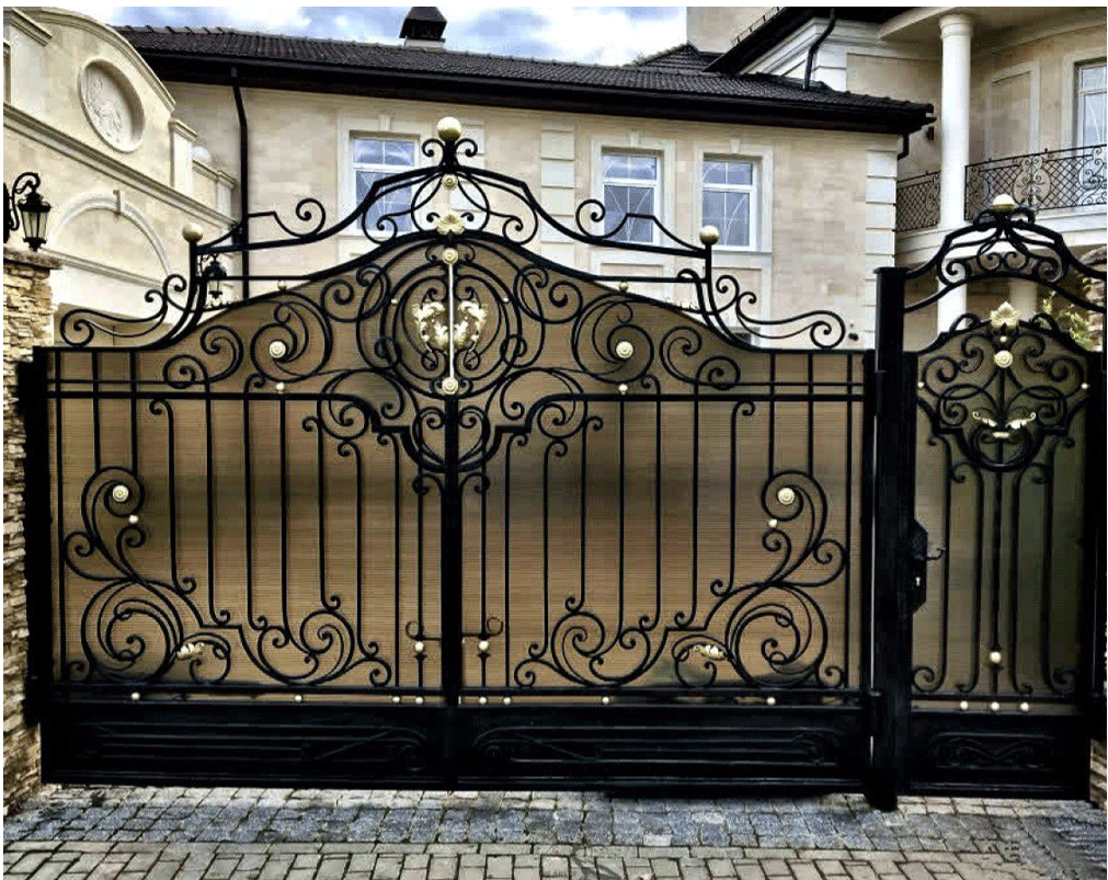 Кованые ворота можно условно разделить на три основных вида по типу дизайна. Во-первых: «глухие», закрытые металлическим листом ворота. Как правило, такие ворота украшаются накладной или отстоящей от листа ковкой. По верху ворот можно расположить ряд декоративных элементов или пик. Во-вторых: «прозрачные», решетчатые ворота. Этот тип ворот отличает внешняя легкость конструкций, часто используется художественная ковка. Решетчатые кованые ворота, как правило, невысокие, с фигурной формой верха. И в-третьих: «комбинированные» ворота, где низ закрыт листом с накладной или отстоящей от листа ковкой, а верхняя половина состоит из кованого, часто художественного, узора. Это наиболее распространенный и популярный тип кованых ворот. Верх и нижняя закрытая часть ворот могут иметь фигурные формы, абстрактные или соответствующие основной теме рисунка ворот. Все вышесказанное, в равной мере, относится как к кованым воротам, так и к кованым калиткам.